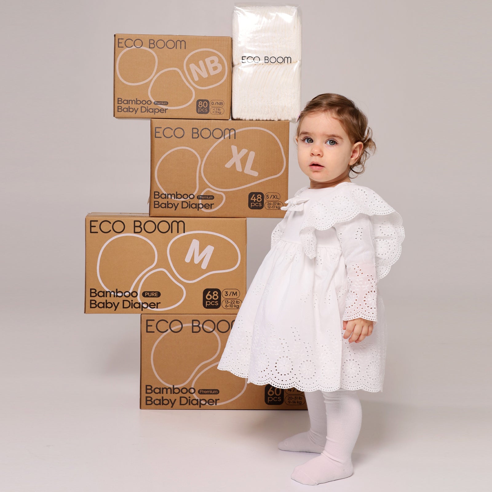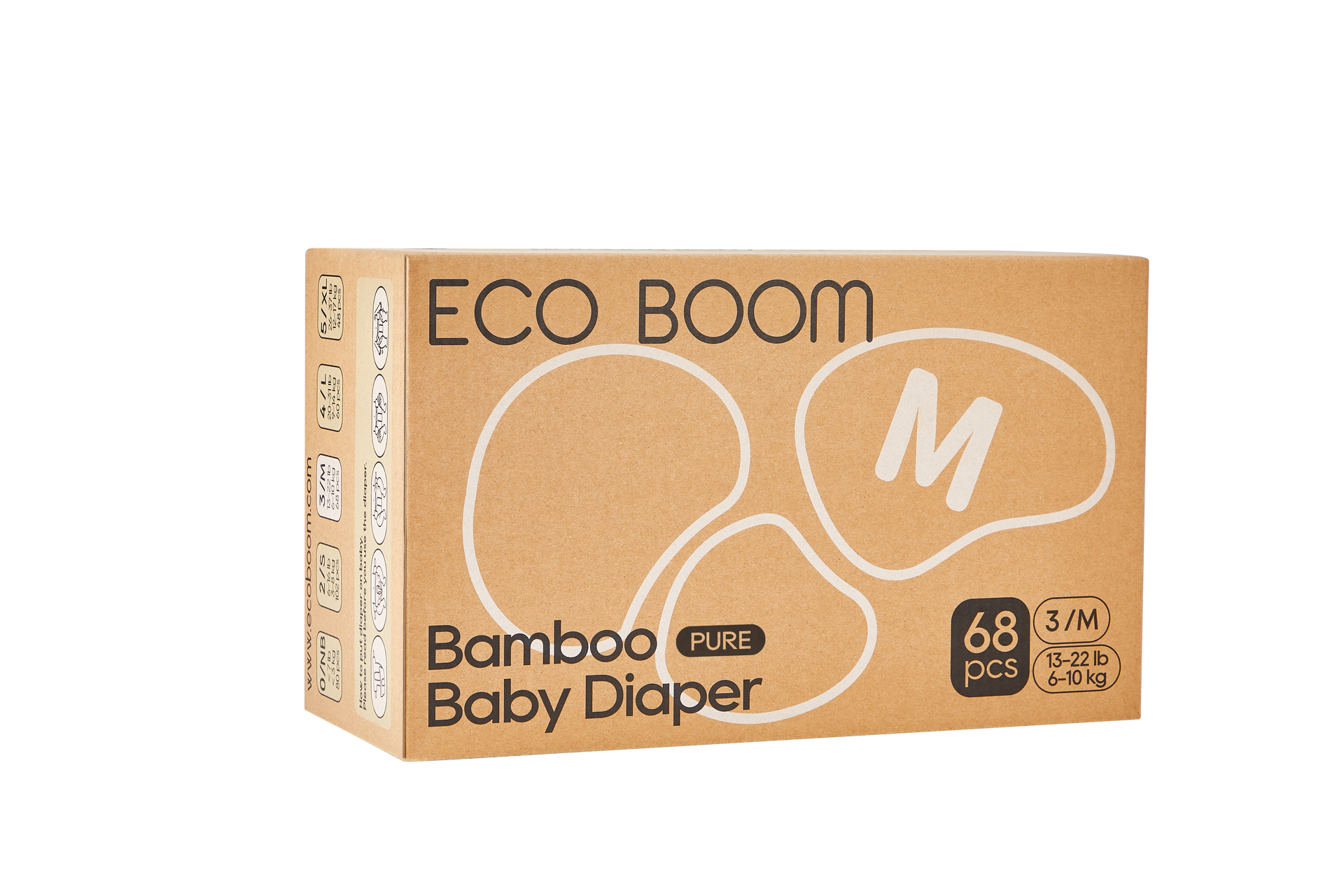 CAJA MENSUAL Pañales de noche ecológicos biodegradables de fibra de bambú PURE Talla 3/M de 6 a 10 kg (272u)