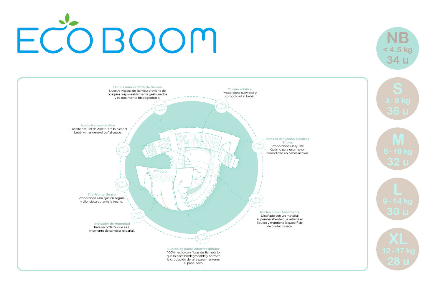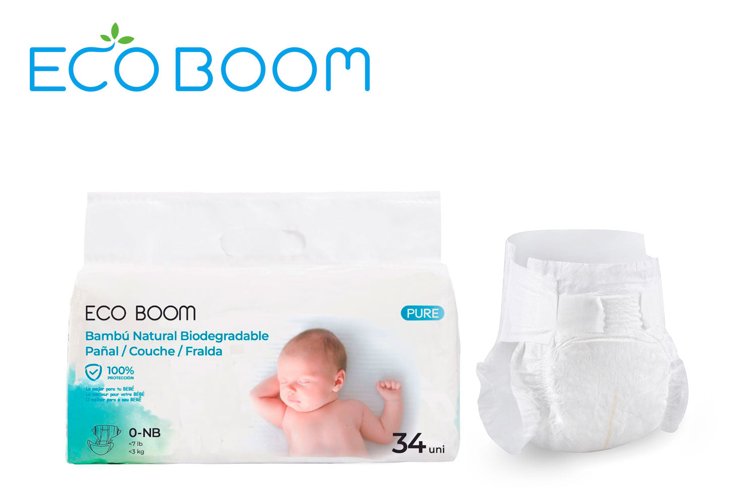 Los pañales biodegradables de Eco Boom están fabricadas de fibra de bambú 100% natural.