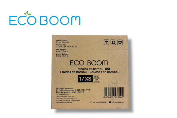CAJA MENSUAL Pañales de día ecológicos biodegradables de fibra de bambú JOY Talla 1/XS de 1 a 4,5 kg (34u) - 6 BOLSAS